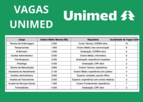 Unimed Nacional abre vagas de emprego em Manaus para áreas de tecnologia e enfermagem Empregos Manaus / 24 de fevereiro de 2026