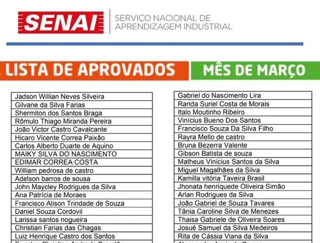 O Serviço Nacional de Aprendizagem Industrial (SENAI) do Amazonas divulgou a lista de aprovados para 2.772 vagas gratuitas em cursos de qualificação e aperfeiçoamento profissional. As oportunidades abrangem modalidades presencial, semipresencial e Educação a Distância (EaD), distribuídas nas unidades do SENAI em Manaus.